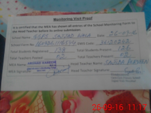 | EMIS Code: 36120242 | Name of School: GGPS SAJAD WALA SHUJABAD DISTT. MULTAN | |||