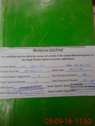 | Attendance Register | Head Teacher | MEA with School | Visit Proof |