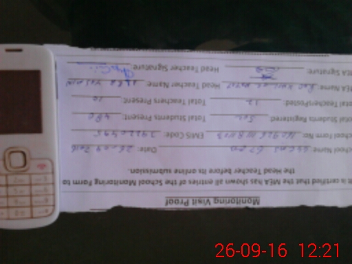 | Monitoring Date: 26-09-2016 | Start Time: 26-09-2016 11:17 AM | End Time: 26-09-2016 12:22 PM | Name of MEA: Kh**** Ha**** (R**** | |