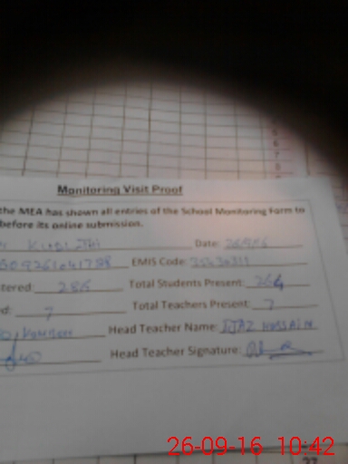 | Attendance Register | Head Teacher | MEA with School | Visit Proof |