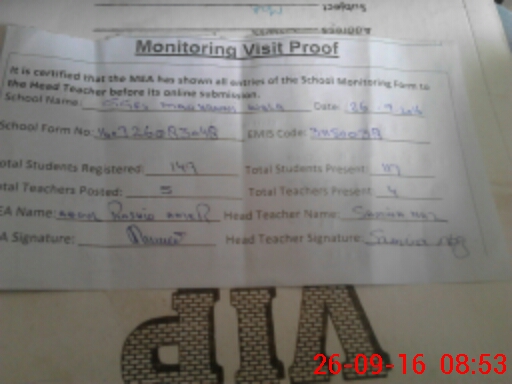 | Certified that this School was Inspected by the Undersigned MEA/DMO Today and the Information Stated Above is as Per Record. | |||||