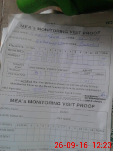 | Attendance Register | Head Teacher | MEA with School | Visit Proof |