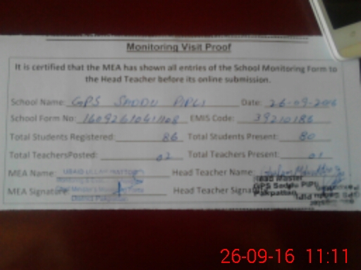 | EMIS Code: 39210186 | Name of School: GPS SADDU PIPLI PO PAKPATTAN | |||