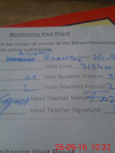 | Attendance Register | Head Teacher | MEA with School | Visit Proof |