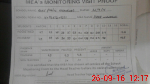 | Certified that this School was Inspected by the Undersigned MEA/DMO Today and the Information Stated Above is as Per Record. | |||||