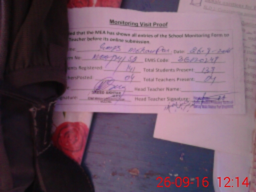 | Attendance Register | Head Teacher | MEA with School | Visit Proof |