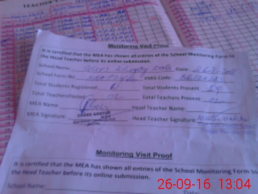 | Attendance Register | Head Teacher | MEA with School | Visit Proof |