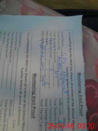| EMIS Code: 38470407 | Name of School: GPS MELO WAL | |||