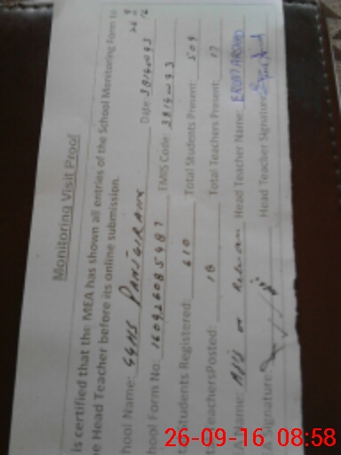 | Certified that this School was Inspected by the Undersigned MEA/DMO Today and the Information Stated Above is as Per Record. | |||||