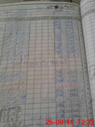 | CNIC | Full Name | Designation | R/C | Absence During Last Calender Month |