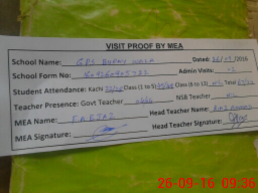 | EMIS Code: 32410130 | Name of School: GPS BURREY WALA | |||