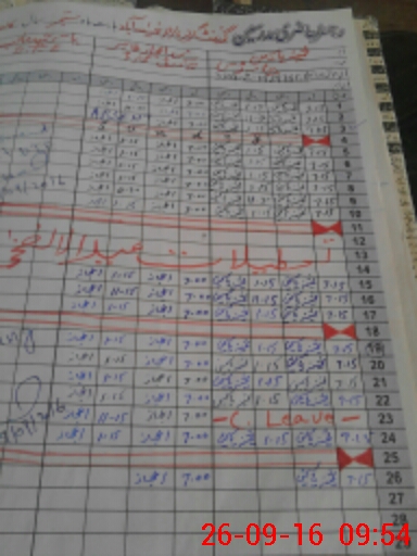 | CNIC | Full Name | Designation | R/C | Absence During Last Calender Month |