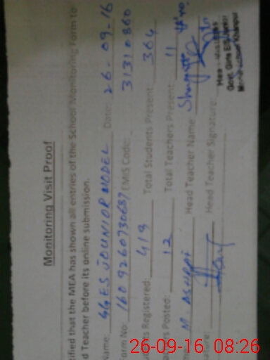 | Certified that this School was Inspected by the Undersigned MEA/DMO Today and the Information Stated Above is as Per Record. | |||||