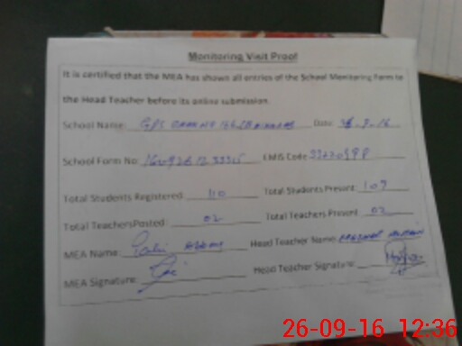 | Attendance Register | Head Teacher | MEA with School | Visit Proof |