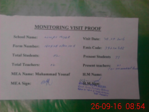 | Attendance Register | Head Teacher | MEA with School | Visit Proof |