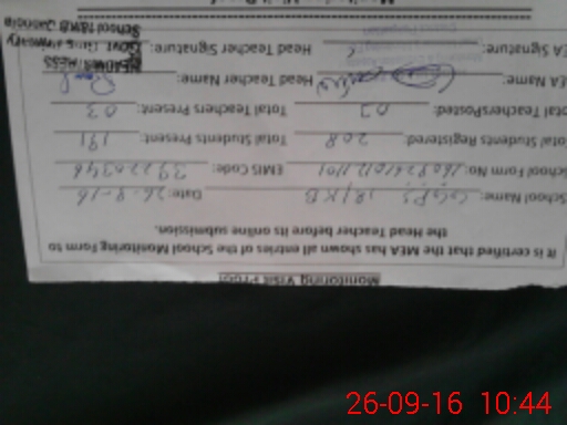 | Name: MU**** JA**** Designation: (School Headmaster's/Headmistress's) PST Phone/Cell Number: 03**** |