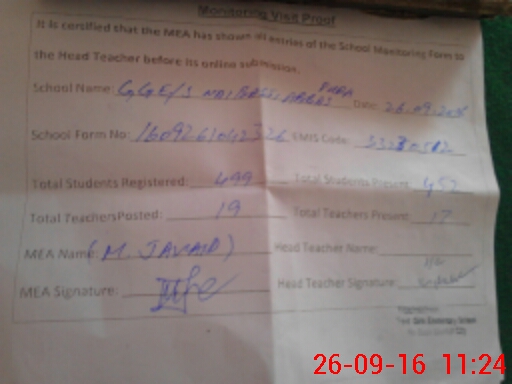 | Certified that this School was Inspected by the Undersigned MEA/DMO Today and the Information Stated Above is as Per Record. | |||||