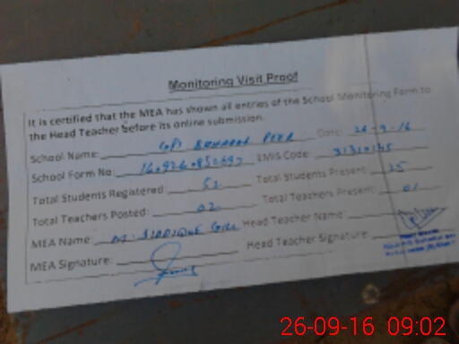 | EMIS Code: 31310145 | Name of School: GPS BAHADUR PEER | |||