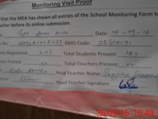 | Certified that this School was Inspected by the Undersigned MEA/DMO Today and the Information Stated Above is as Per Record. | |||||