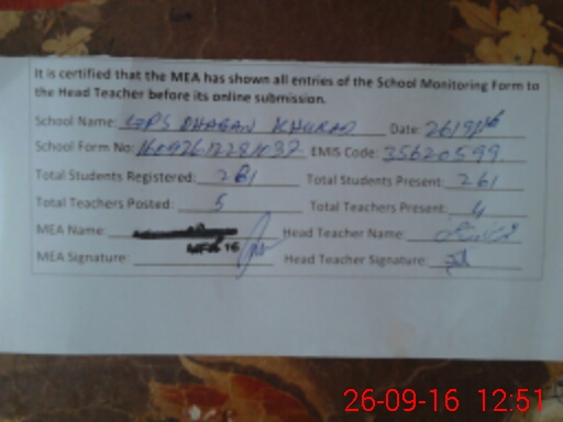 | Certified that this School was Inspected by the Undersigned MEA/DMO Today and the Information Stated Above is as Per Record. | |||||