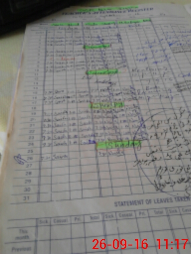 | CNIC | Full Name | Designation | R/C | Absence During Last Calender Month |