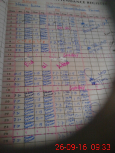 | Monitoring Date: 26-09-2016 | Start Time: 26-09-2016 09:19 AM | End Time: 26-09-2016 09:38 AM | Name of MEA: Sh**** | |