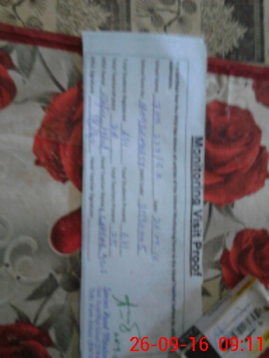 | Monitoring Date: 26-09-2016 | Start Time: 26-09-2016 08:04 AM | End Time: 26-09-2016 09:11 AM | Name of MEA: Za**** Iq**** BN**** | |