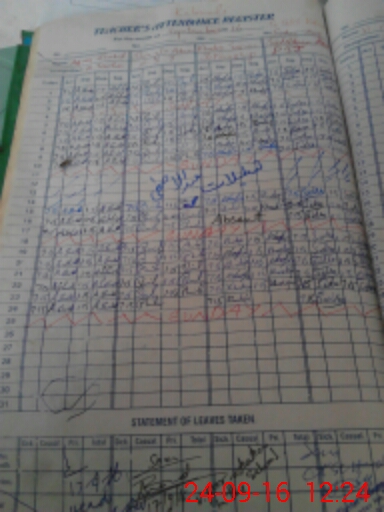 | CNIC | Full Name | Designation | R/C | Absence During Last Calender Month |