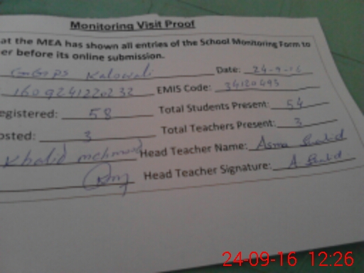 | Attendance Register | Head Teacher | MEA with School | Visit Proof |