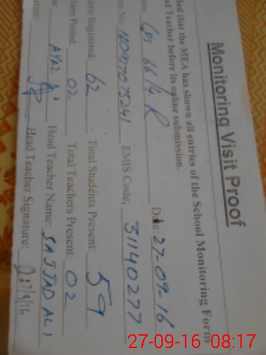| EMIS Code: 31140277 | Name of School: GPS CHAK NO. 67/4-R | |||