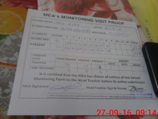 | Attendance Register | Head Teacher | MEA with School | Visit Proof |