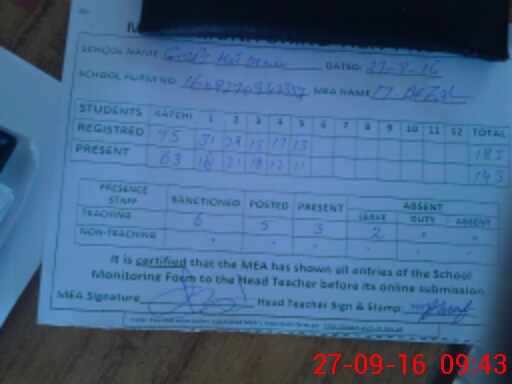 | Attendance Register | Head Teacher | MEA with School | Visit Proof |