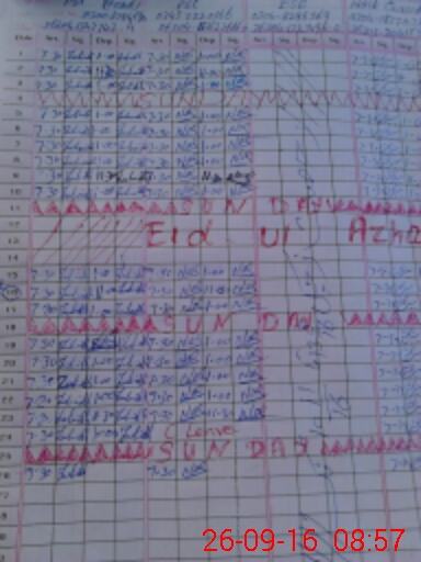 | CNIC | Full Name | Designation | R/C | Absence During Last Calender Month |