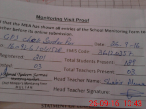 | EMIS Code: 36120357 | Name of School: GPS CHAK SARDAR PUR MOZA SHAH PUR UBHA | |||