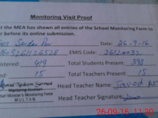 | EMIS Code: 36120032 | Name of School: GHS CHAK SARDAR PUR SHUJABAD | |||