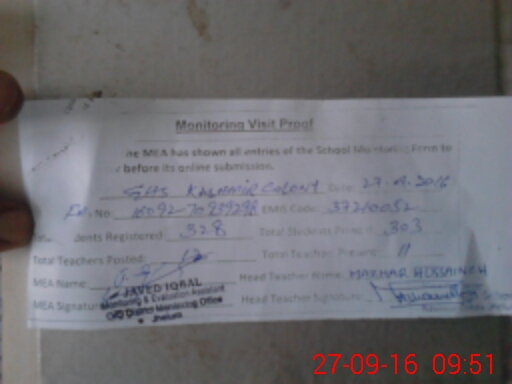 | EMIS Code: 37210052 | Name of School: GHS KASHMIR COLONY JHELUM | |||