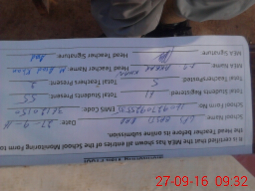 | Attendance Register | Head Teacher | MEA with School | Visit Proof |