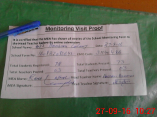 | Attendance Register | Head Teacher | MEA with School | Visit Proof |