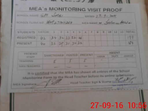 | Attendance Register | Head Teacher | MEA with School | Visit Proof |