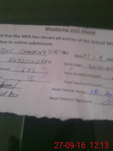| Attendance Register | Head Teacher | MEA with School | Visit Proof |
