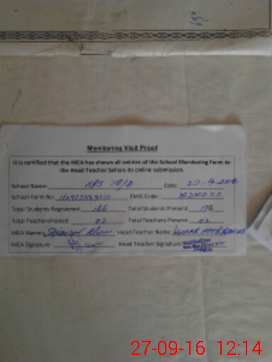 | Attendance Register | Head Teacher | MEA with School | Visit Proof |