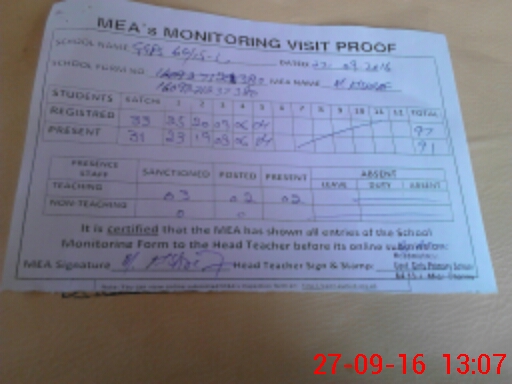 | Attendance Register | Head Teacher | MEA with School | Visit Proof |