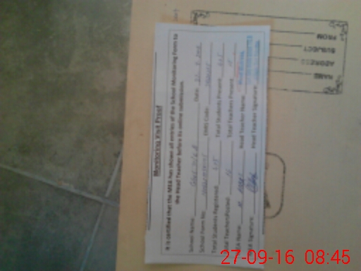 | Monitoring Date: 27-09-2016 | Start Time: 27-09-2016 07:59 AM | End Time: 27-09-2016 08:46 AM | Name of MEA: Mu**** Ab**** | |