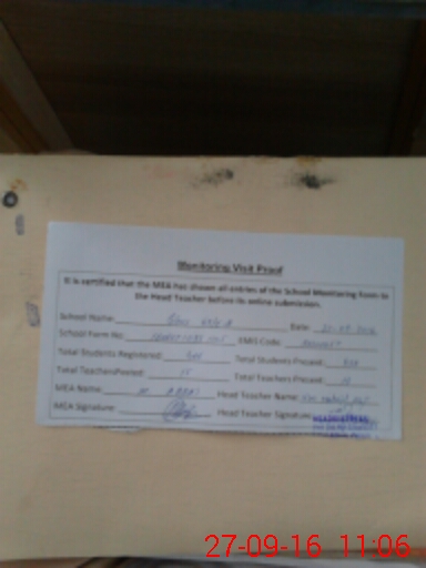 | Attendance Register | Head Teacher | MEA with School | Visit Proof |