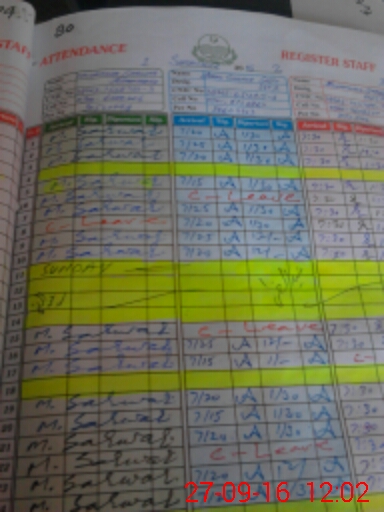| CNIC | Full Name | Designation | R/C | Absence During Last Calender Month |