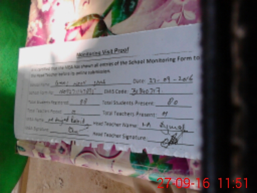 | Attendance Register | Head Teacher | MEA with School | Visit Proof |