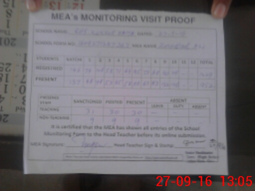 | Attendance Register | Head Teacher | MEA with School | Visit Proof |