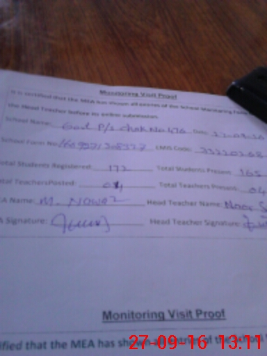 | Attendance Register | Head Teacher | MEA with School | Visit Proof |