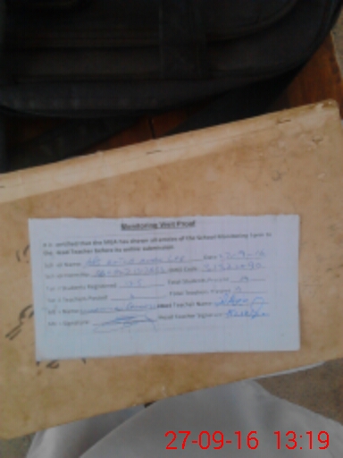 | Attendance Register | Head Teacher | MEA with School | Visit Proof |