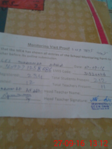 | EMIS Code: 31320046 | Name of School: GHS MUHAMMAD DAHA | |||